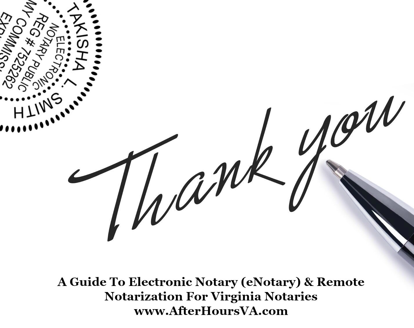 Get your copy here: https://www.afterhoursva.com/a-guide-to-electronic-notary-enotary-remote-notarization-for-virginia-notaries/